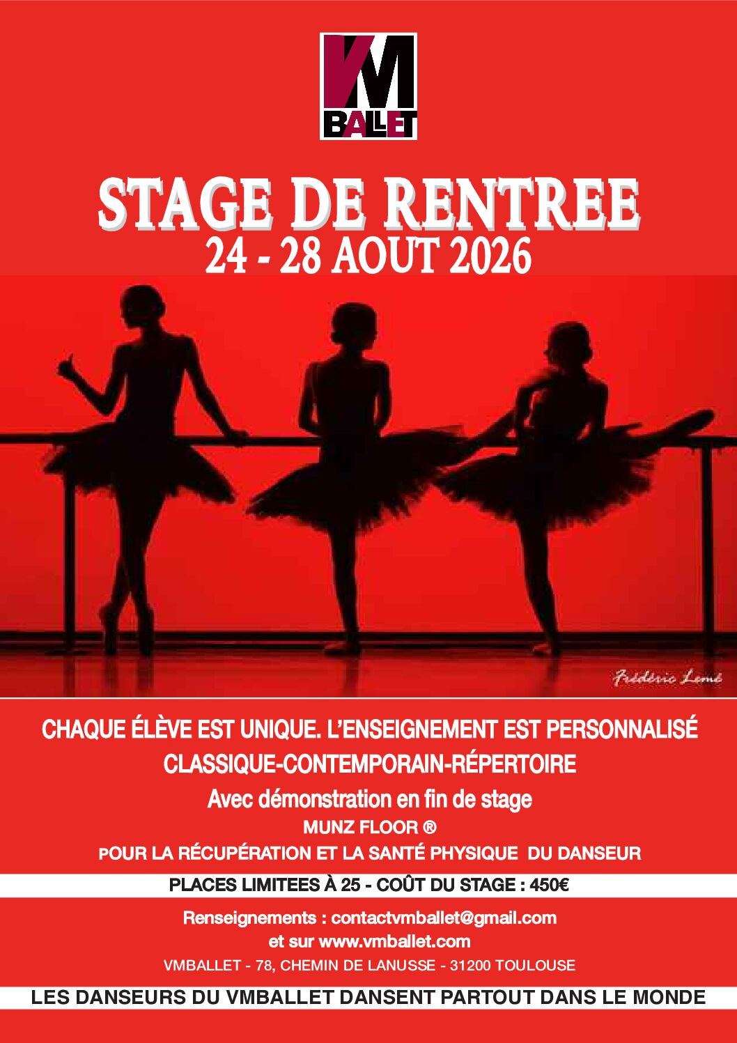 La rentrée est proche et un stage de (re)mise en forme serait la meilleure façon d’aborder la rentrée. Venez vous faire coucouner par Vinciane Ghyssens, Antoine Lecouteux et Matthew Madsen. Après le soleil de l’été, un pas vers les étoiles !